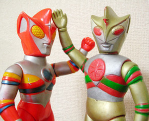 トリプルファイターの所謂パチモンソフビをゲット。初代ウルトラマンと並んで許せる円谷ヒーローのトリプルファイターのソフビは、単独スポンサーだったブルマァク製をブッ飛ばし、Bタイプ複眼マスクを再現して、ちゃんと全身ゴールドで包んだこれがいちばんカッコいいと思う。ちょっとドリムーンを髣髴とさせるミラクルシグナルの輝きも眩しい。ついでに東芝レコードの対ゲランのスチルのファンにはチョップ手も嬉しい。