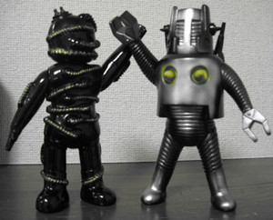 実はまだ続いていたマーミットのロボット刑事シリーズ。その新製品のデンネツマンとミサイルマンが届く。もとよりポピーのドルゲマンの造形に倣わなかった時点でどないやねんなこのシリーズ。ミサイルマンは黒成型に銀色スプレー、造形も結構まとまってて許せるとして、手抜きとか以前のデンネツマンにはサスガのワタクシも唖然とさせられる。誰やねんこれ!もうちょっとどないかならんかったんかい!と、申し込み〆切過ぎてるのを無理して回してもらいながら言いたい放題である。